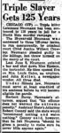 - European Stars and Stripes, February 4th, 1957. Larry Neumann is sentenced to a 125 years for the triple murder of June 8th, 1956, he would later or only serve 12 years. Pictures from his capture can be found on this page http://www.mchenrycounty1981.com/images/cullottas-hole-in-the-wall-gang-and-larry-neumann/